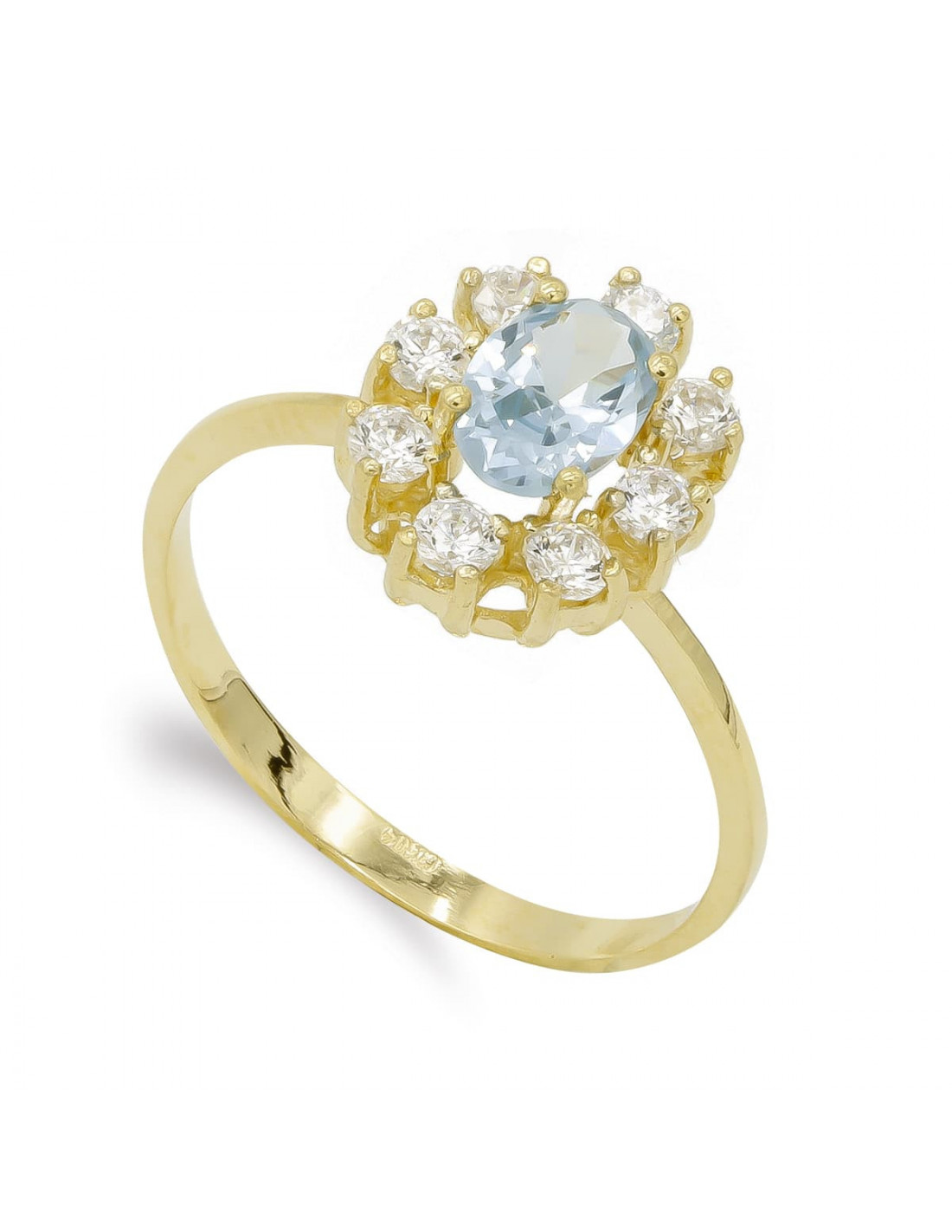 SORTIJA ORO AMARILLO 1 PIEDRA OVAL Y 8 CIRCONITAS