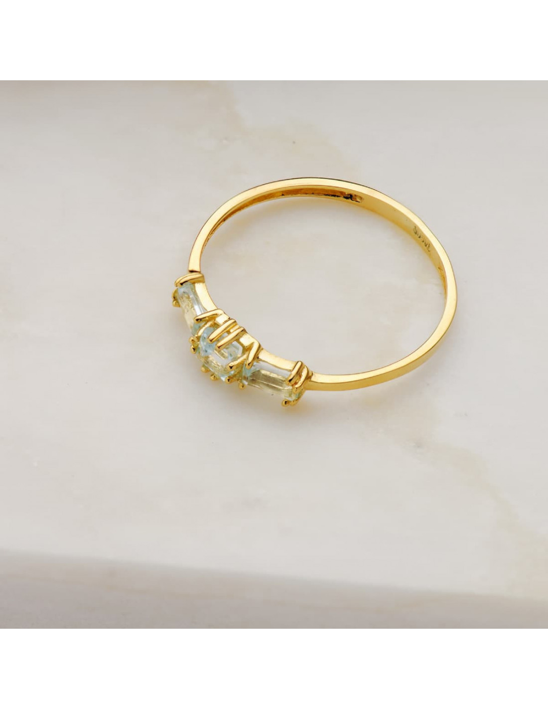 18K SORTIJA ORO AMARILLO TOPACIO AZUL NATURAL TALLA CUADRADA Y BAGUETTE
