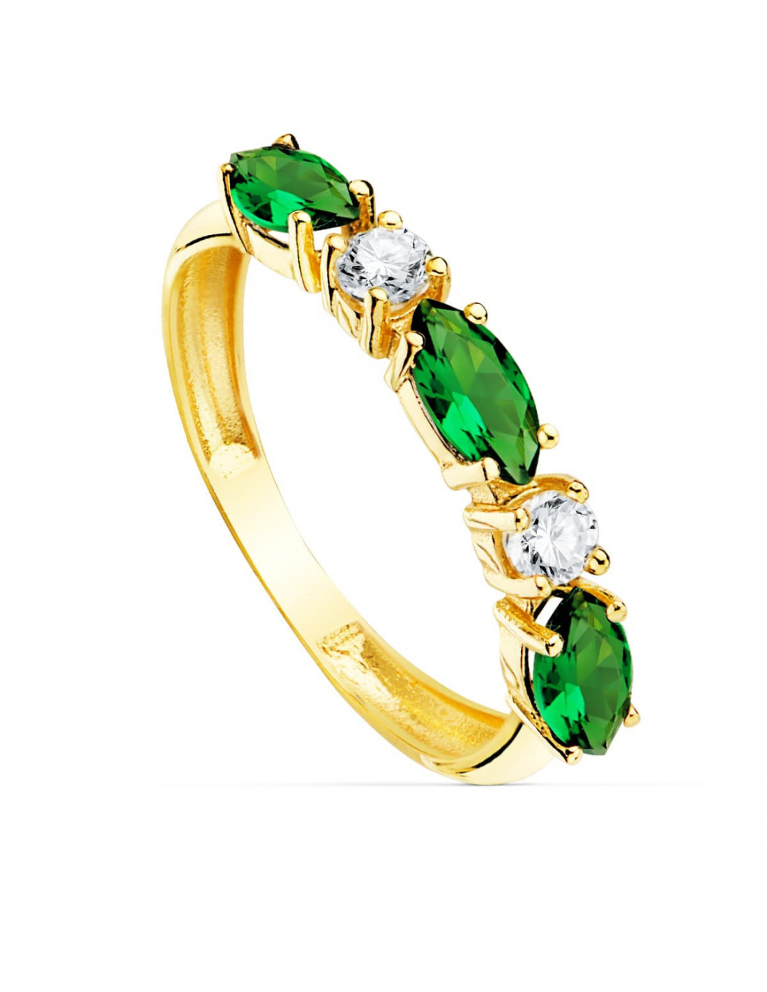 18K SORTIJA ORO AMARILLO 3 CIRCONITAS VERDES TALLA MARQUISE ANCHO 3 MM