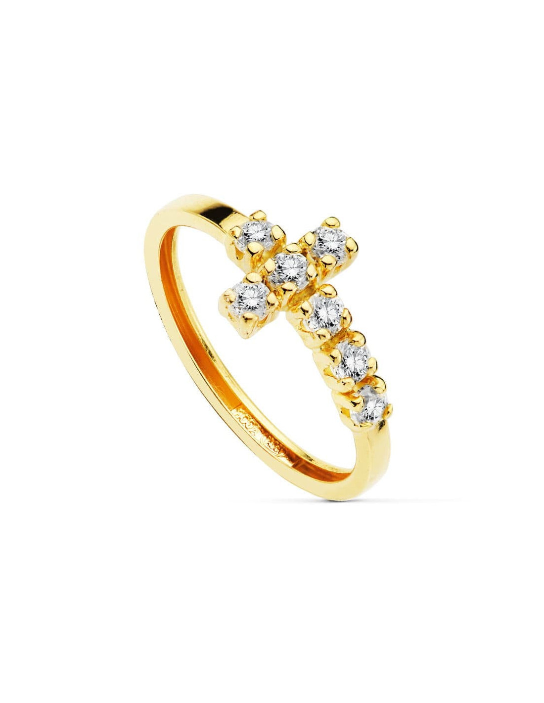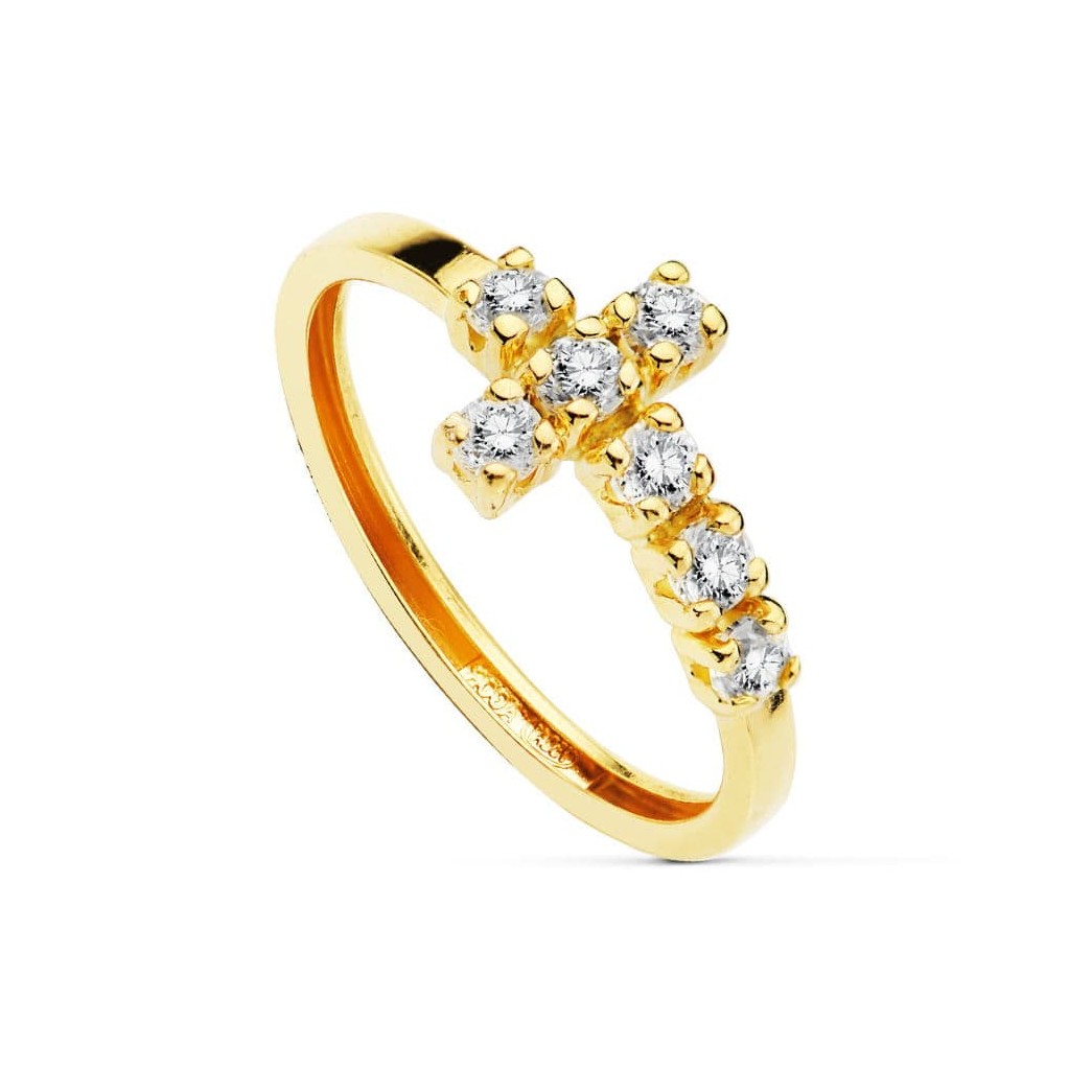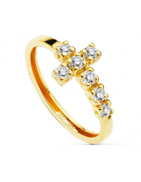 18K SORTIJA CRUZ 7 CIRCONITAS 2 MM