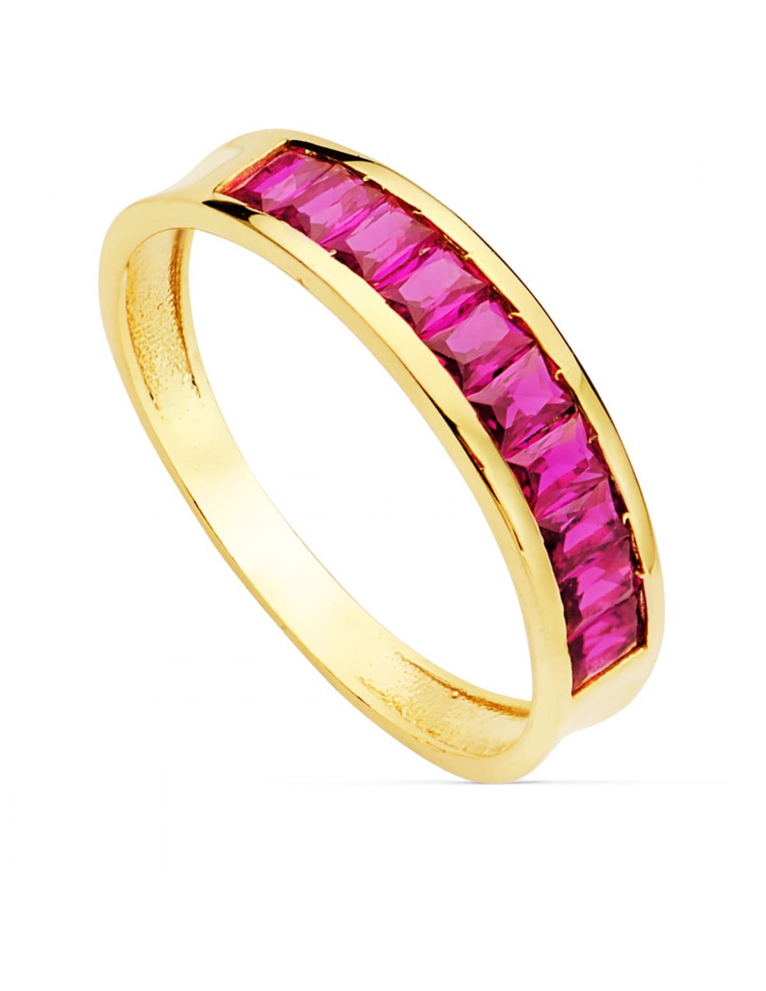 18K SORTIJA ORO AMARILLO CIRCONITAS ROJAS TALLA BAGUETTE. ANCHO 4.5 MM