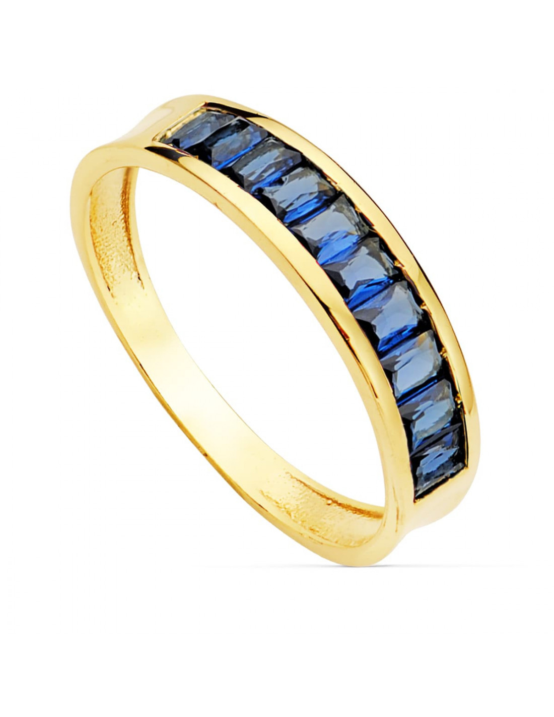 18K SORTIJA ORO AMARILLO CIRCONITAS AZULES TALLA BAGUETTE. ANCHO 4.5 MM