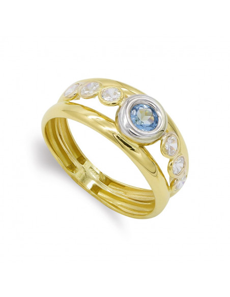 18K SORTIJA ORO BICOLOR AGUAMARINA Y CIRCONITAS