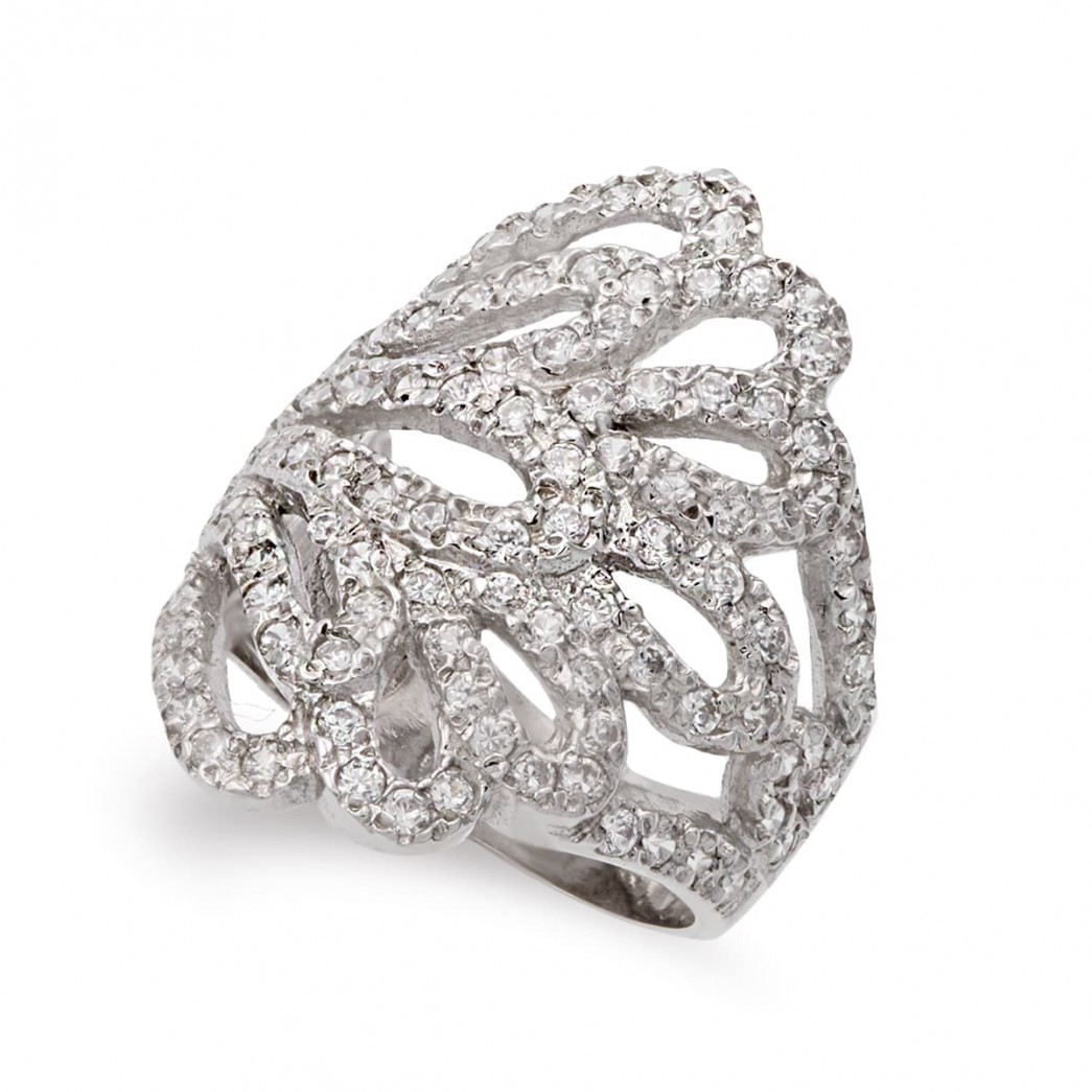 18K SORTIJA ORO BLANCO HOJAS CON CIRCONITAS ANCHO 27 MM