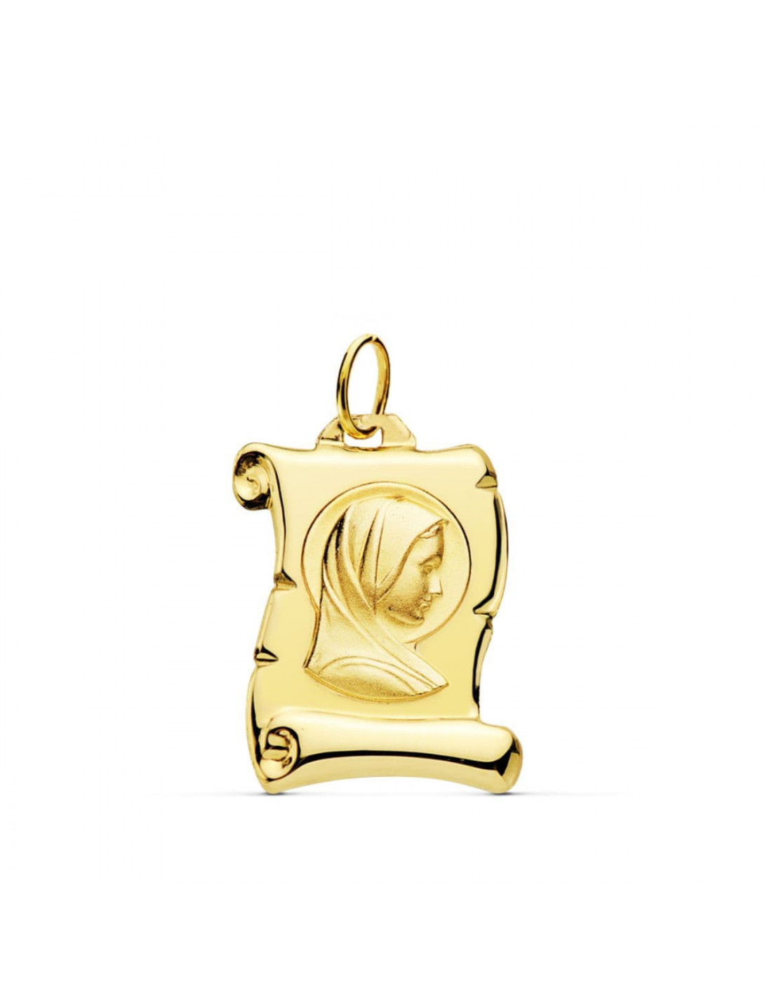 9K PERGAMINO ORO AMARILLO VIRGEN NIÑA 18X12 MM