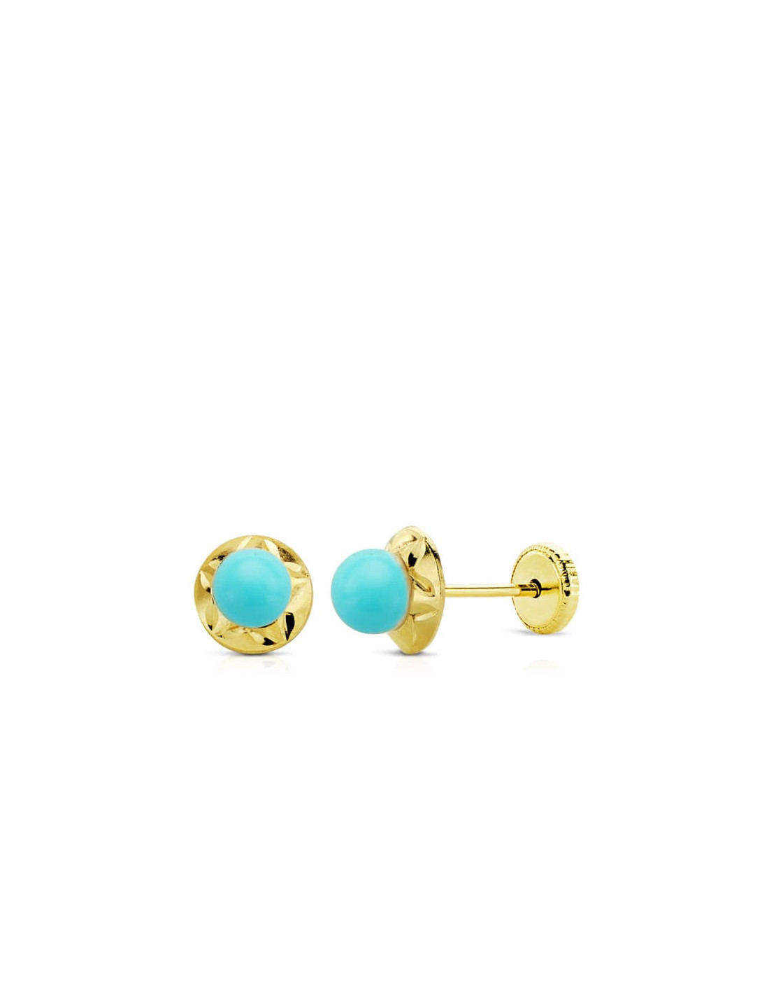 9K PENDIENTES ORLA TALLADA Y TURQUESAS DE 5 MM 7 MM (PEDIDO MINIMO 3 PARES )