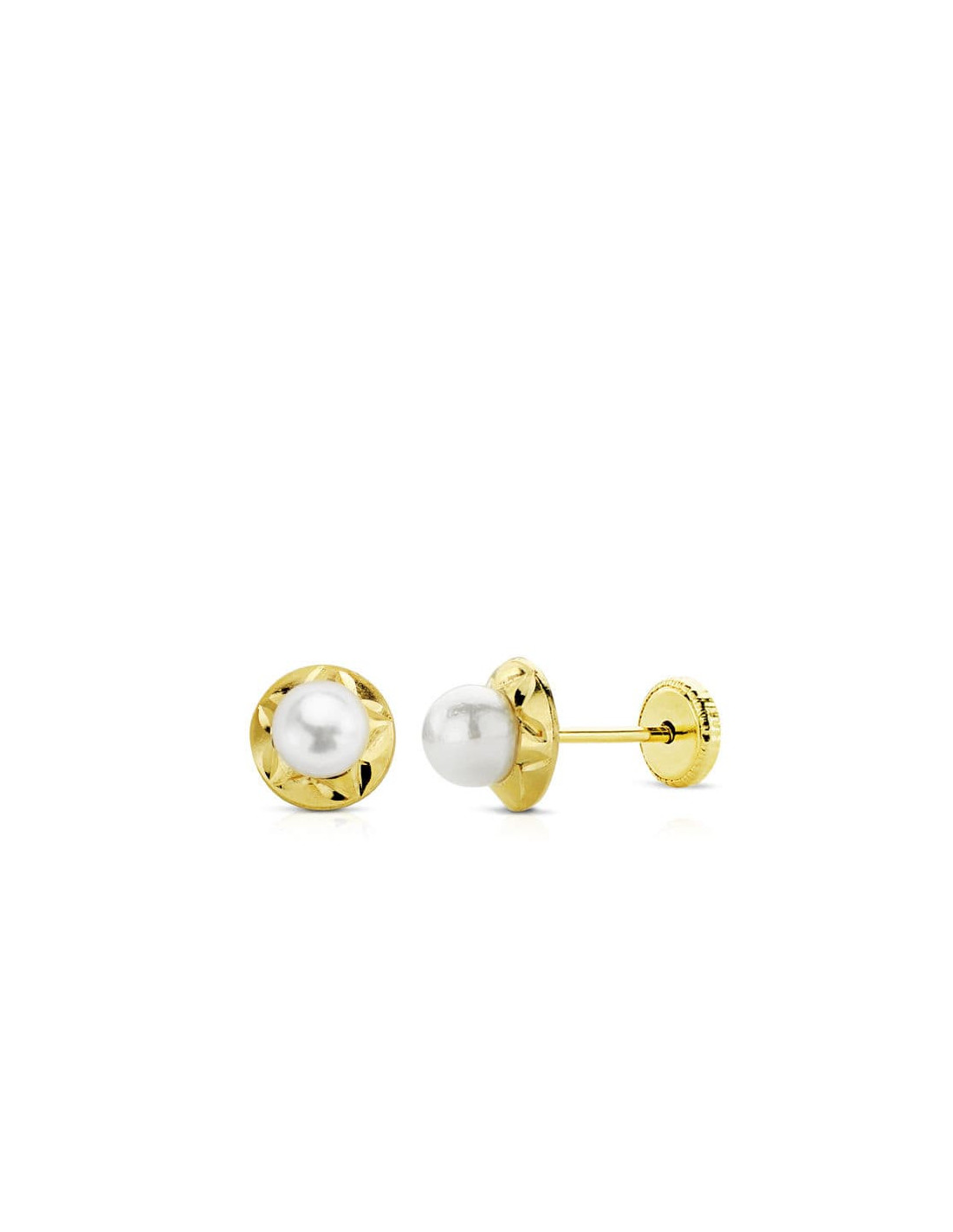 9K PENDIENTES ORLA TALLADA PERLA 4 MM DIAMETRO 6 MM (PEDIDO MINIMO 3 PARES )