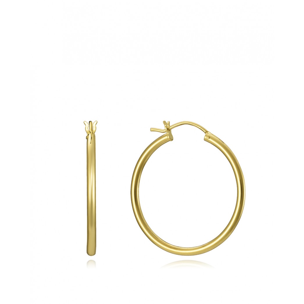 Pendientes TREND tipo aro de Plata de Ley con baño de oro y 30 mm de diámetro interior