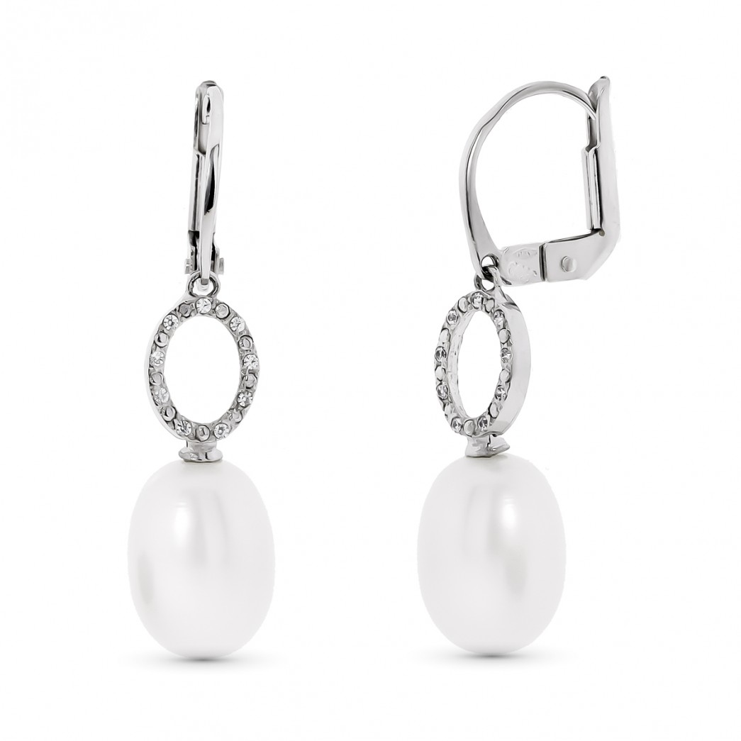 18K PENDIENTES ORO BLANCO MOTIVO OVAL Y PERLA 9 MM CIERRE CATALAN