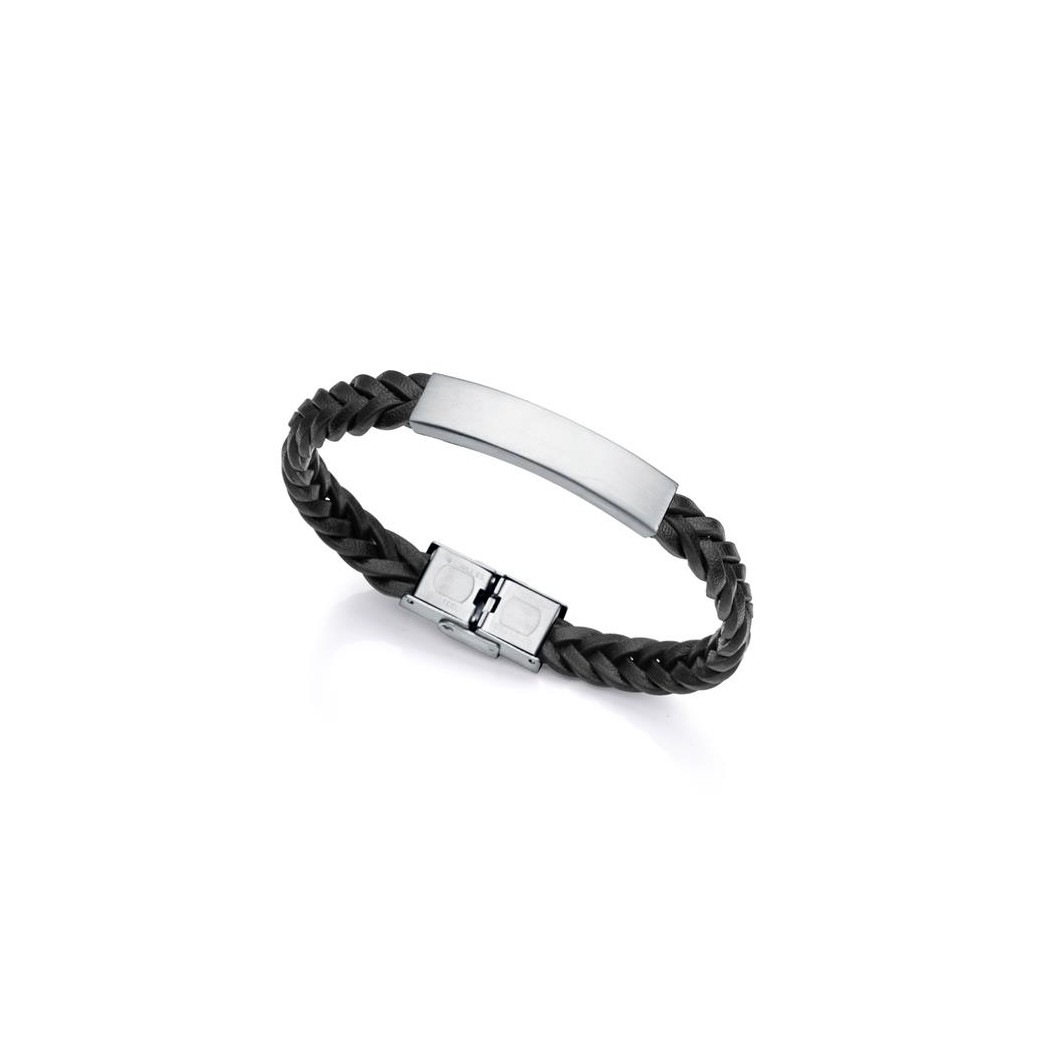 Pulsera Viceroy Fashion para hombre de la colección Air fabricada en correa de piel trenzada negra con una pieza rectangular en acero inoxidable liso en su parte superior. Su cierre es de broche ajustable.