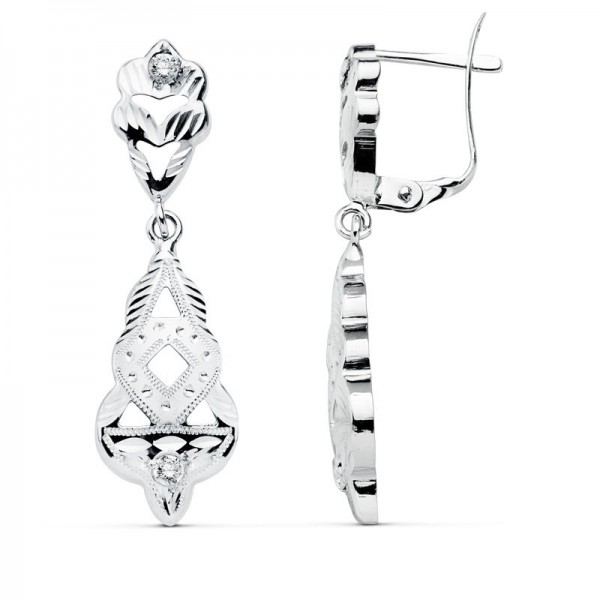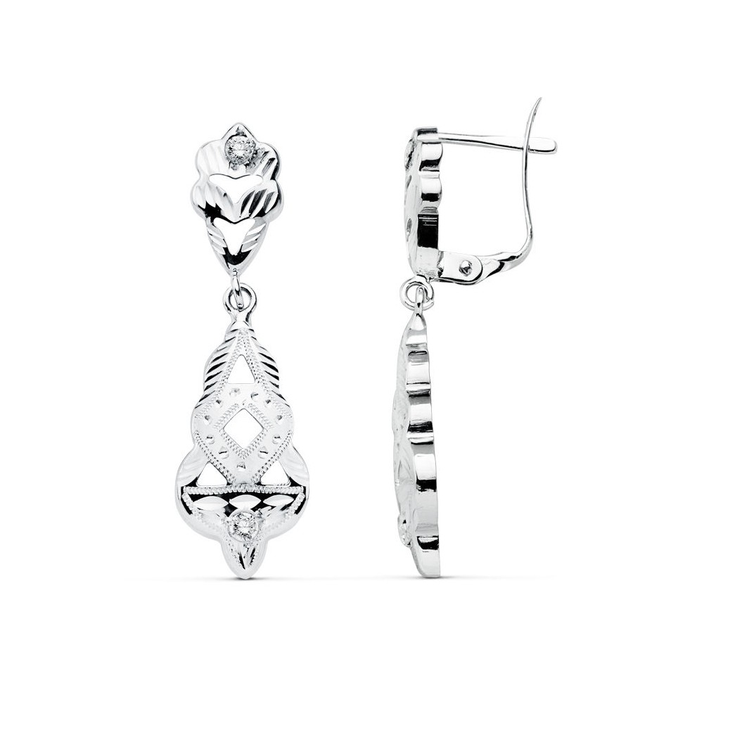 PENDIENTES CUBANAS ORO BLANCO 34 X 9 MM.