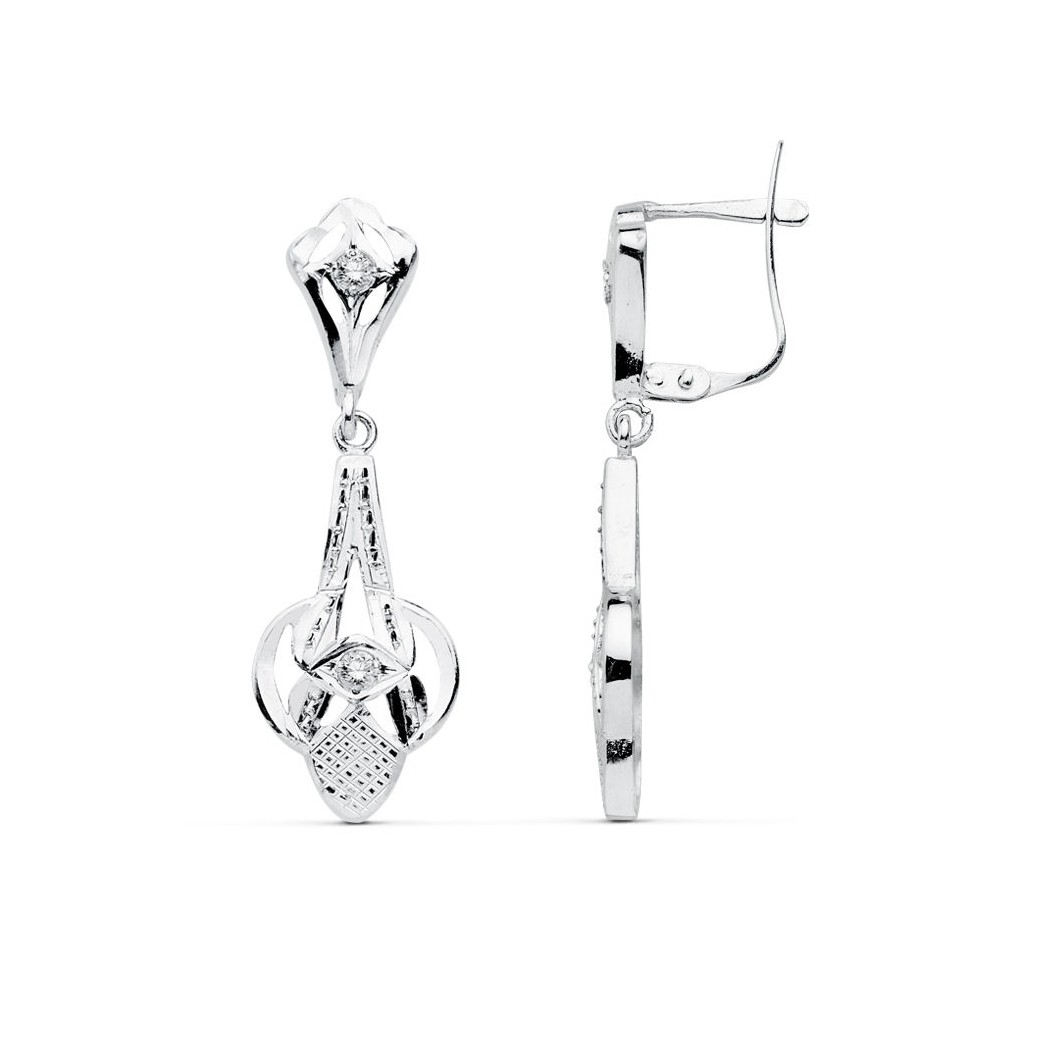 PENDIENTES CUBANAS ORO BLANCO 32 X 10 MM.