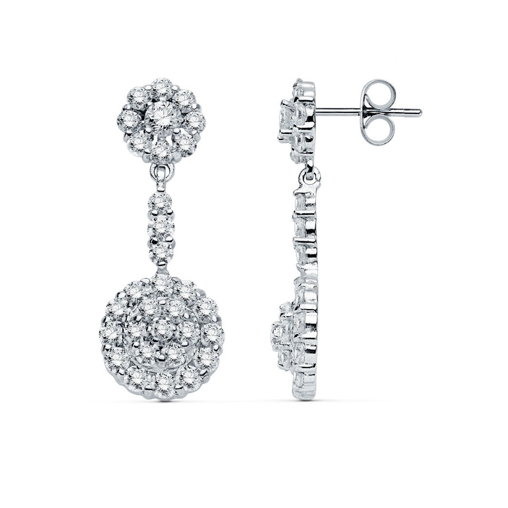 18K PENDIENTES ORO BLANCO CIRCONITAS 32X12 MM