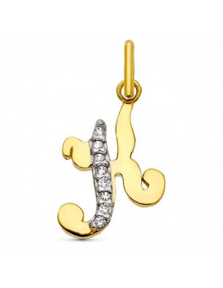 9K COLGANTE LETRA K CON CIRCONITAS ORO AMARILLO 15X12 MM