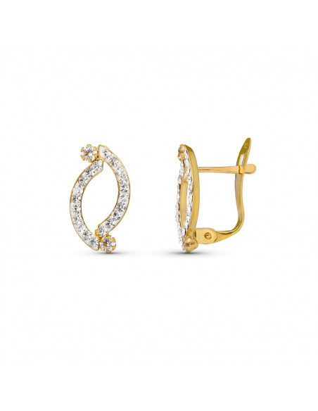 9K PENDIENTES ORO AMARILLO BANDAS CON CIRCONITAS 13X7 MM CIERRE CATALAN