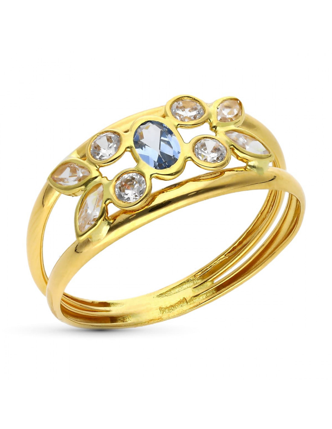 9K SORTIJA ORO AMARILLO AGUAMARINA ANCHO 8 MM