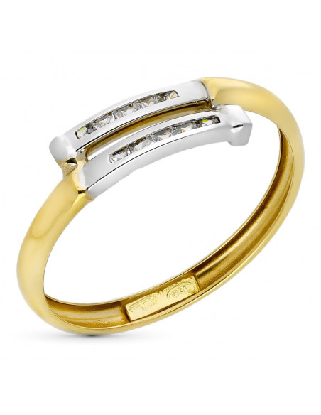 9K SORTIJA ORO BICOLOR DOS CARRILES CON CIRCONITAS ANCHO 5 MM