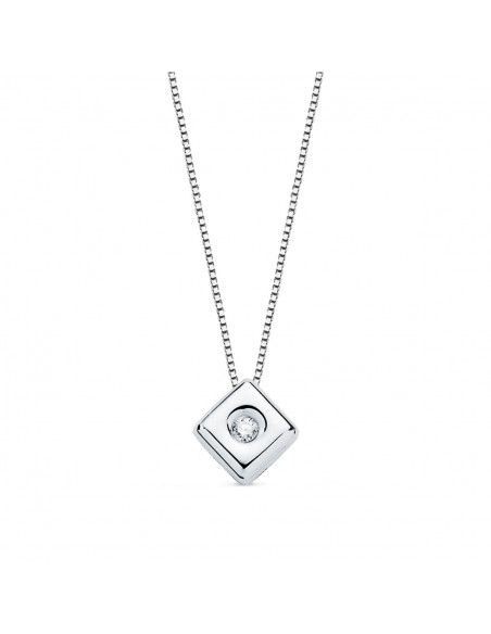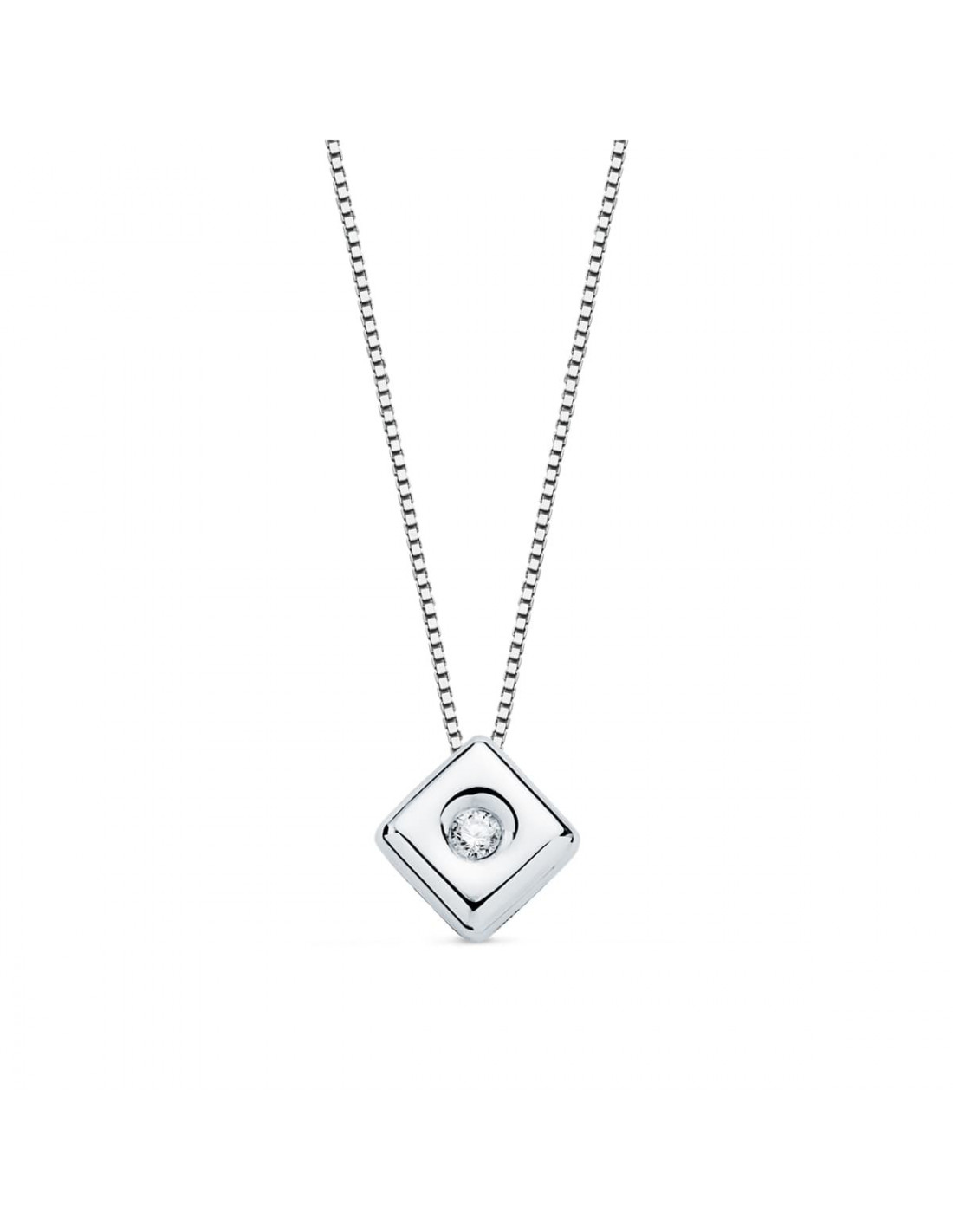 18K GARGANTILLA ORO BLANCO CHATON ROMBO DIAMANTE 0.015 QTS. G-VS2. CADENA 42 CM