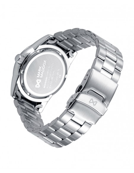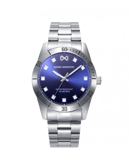Reloj de hombre Mark Maddox Mission tres agujas, caja y brazalete de acero, y esfera azul.