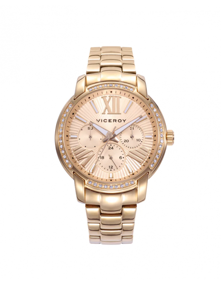 Reloj Viceroy de Mujer Chic, colección especial Rocio Osorno, tres agujas con caja y brazalete en acero en Ip dorado, esfera dorada.