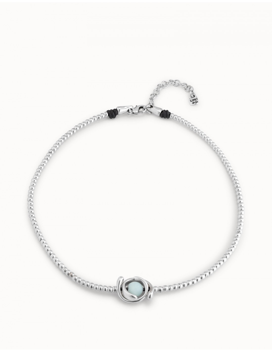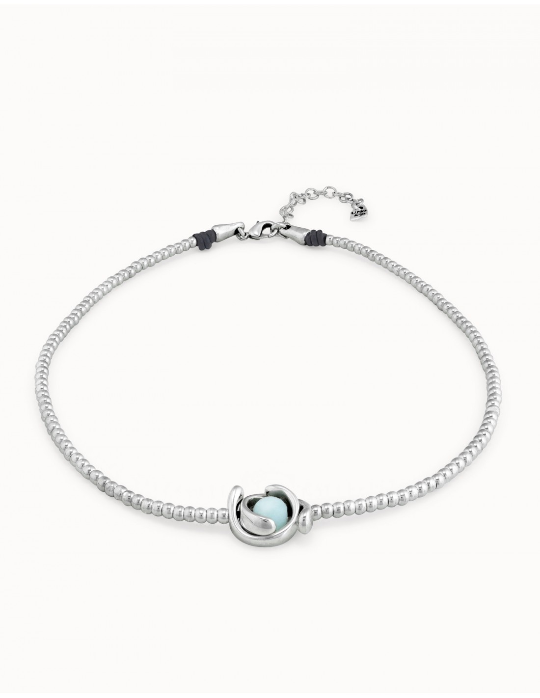 El collar Tight Moon es un collar corto de metal bañado en plata, con un abalorio de doble luna y una amazonita central. El cierre de mosquetón permite regular la pieza a la medida deseada y su peso es de 19 gr. Hazte con esta joya única, elaborada en España de manera artesanal y con la esencia inconfundlible de UNOde50. Combina este collar con el resto de joyas de la colección Uniqueness y triunfa en cualquier ocasión.
