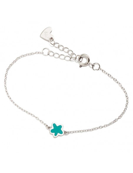 Estamos ante un original y atractiva pulsera compuesta por una cadena rodiada que cuenta con un abalorio en forma de flor con esmalte verde. Su cierre es de mosquetón ajustable.