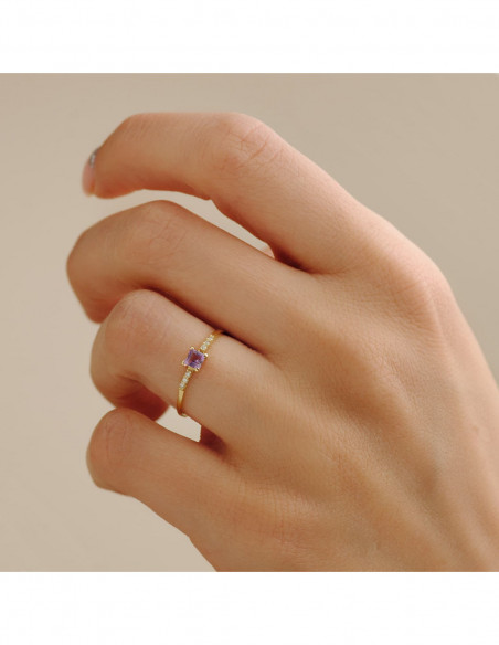 18K SORTIJA ORO AMARILLO 6 DIAMANTES 0,030QTES. G-VS2. PIEDRA 3X3MM.CUERPO 1 MM