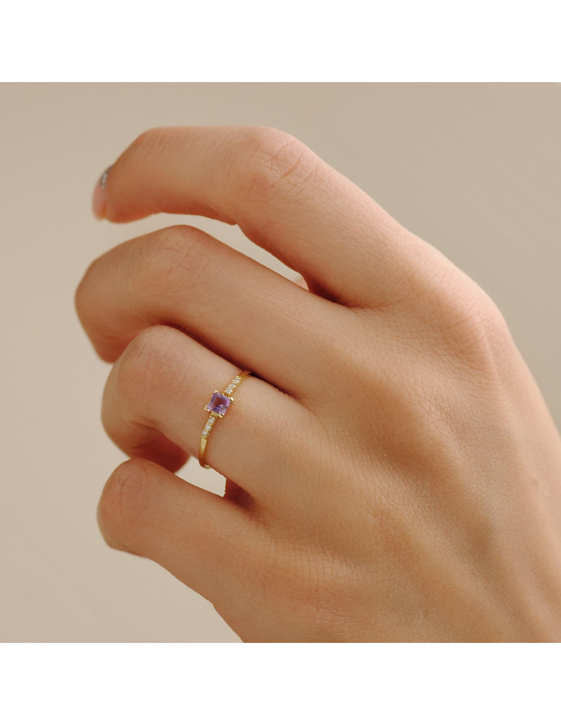 18K SORTIJA ORO AMARILLO 6 DIAMANTES 0.030QTS. G-VS2. PIEDRA 3X3MMCUERPO 1 MM