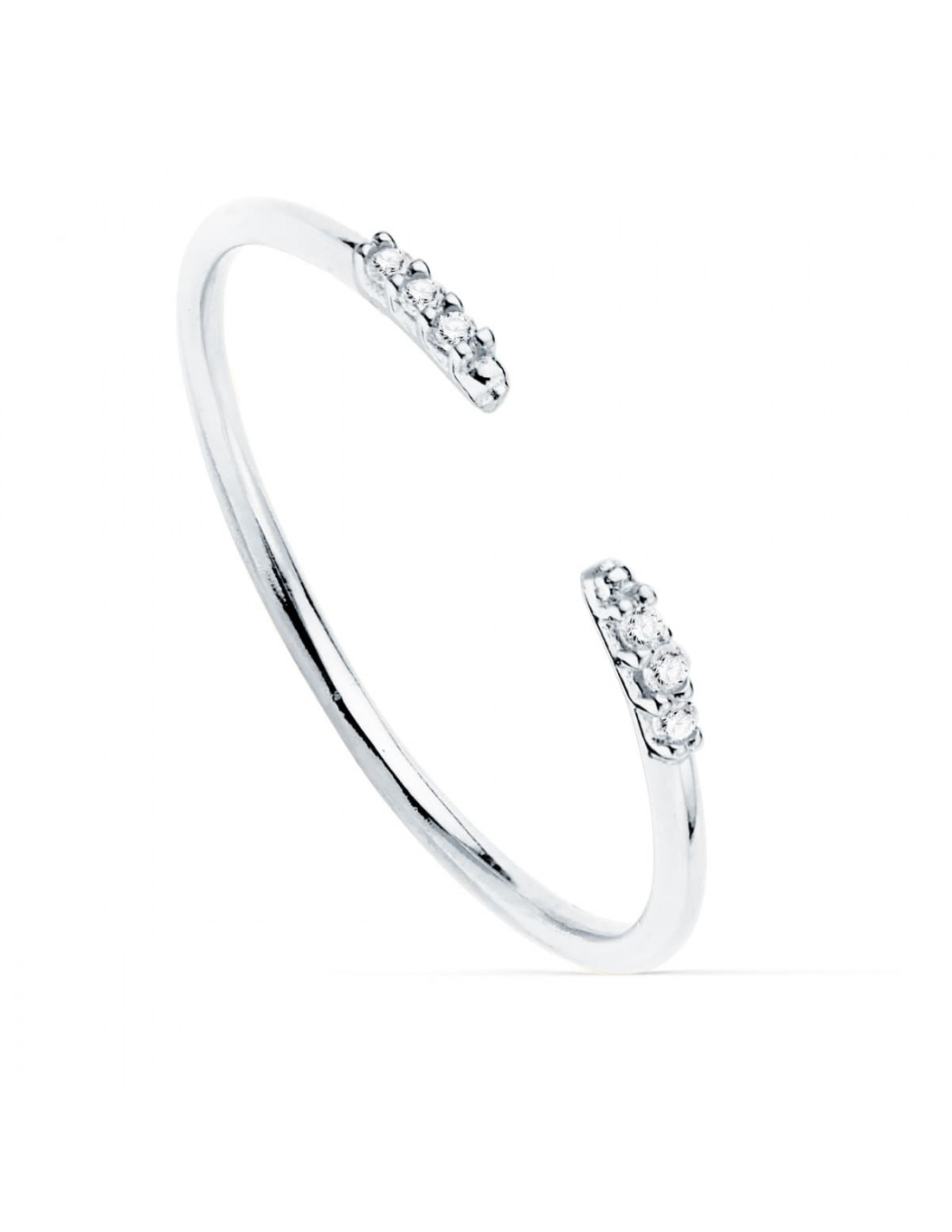 18K SORTIJA ABIERTA ORO BLANCO DIAMANTES 0,030 QTES. G-VS2. CUERPO REDONDO 1 MM