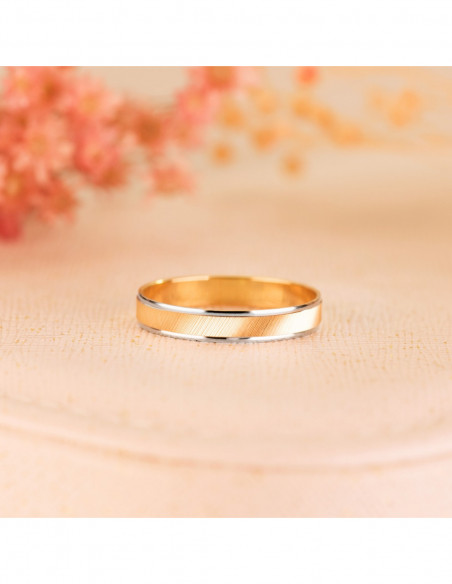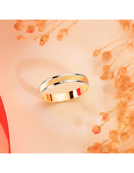 9K ALIANZA ORO BICOLOR ESTRIAS Y BORDES EN BRILLO ANCHO: 3.5 MM