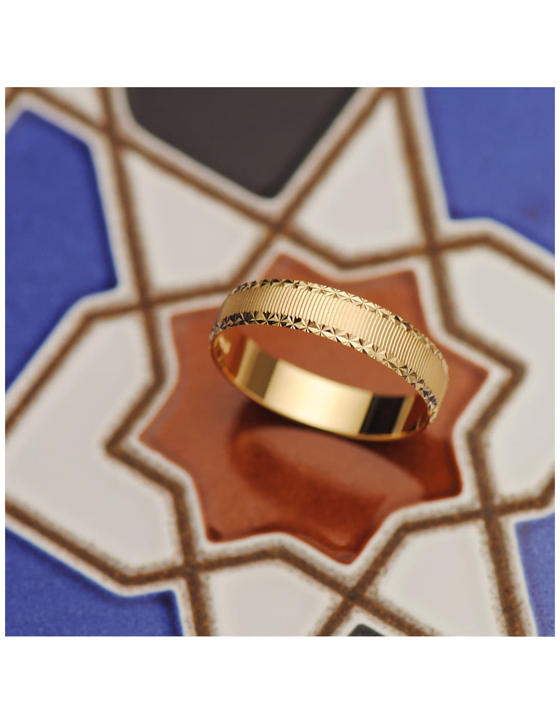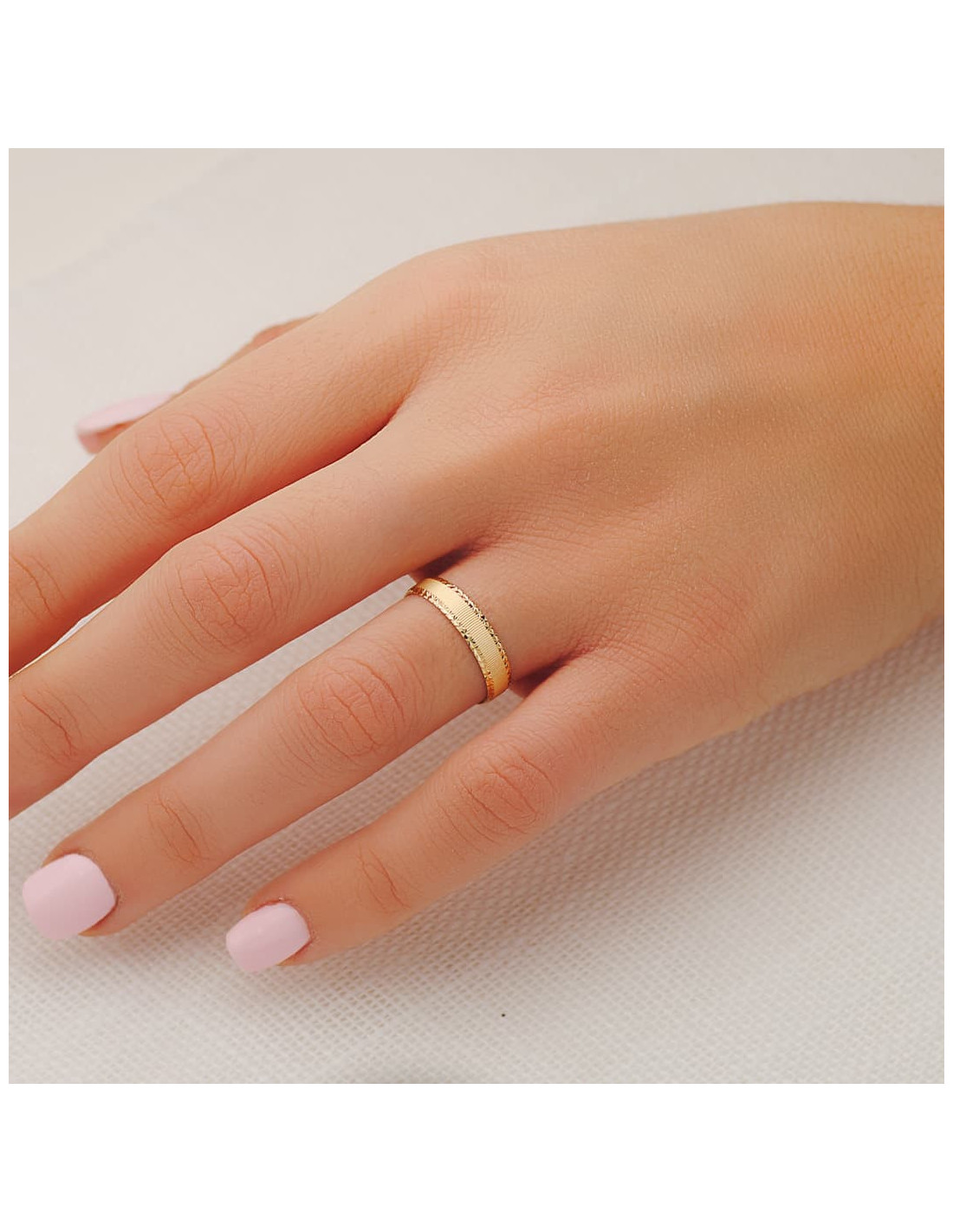 9K ALIANZA ORO AMARILLO MATE Y BORDES DIAMANTADOS. ANCHO: 4 MM