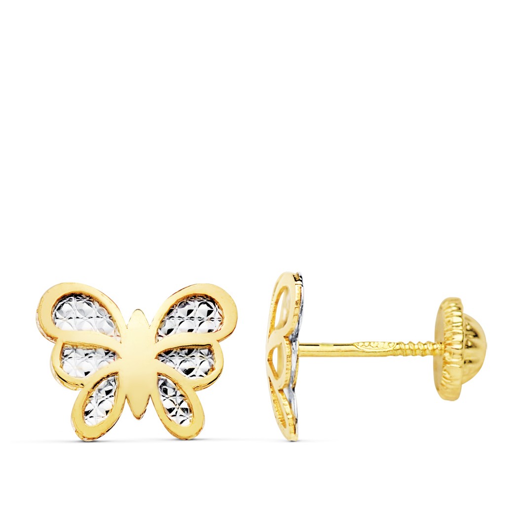 18K PENDIENTES MARIPOSA BICOLOR 10X8 MM CIERRE PRESION