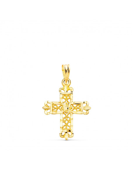18K CRUZ ORO AMARILLO FILIGRANA BORDES TALLADOS. 22X19 MM