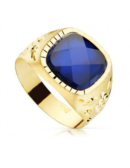 18K SELLO ORO AMARILLO HUECO PIEDRA ZAFIRO SPINEL 11X11 MM