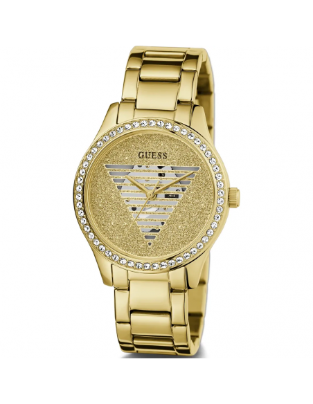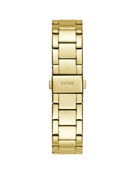 Este reloj marca Guess tiene una caja de Inox con un diámetro de 38 mm y cuenta con una correa de metal. Dentro de la caja se encuentra un mecanismo de Seiko de alta calidad el cual esta protegido por un cristal Mineral.