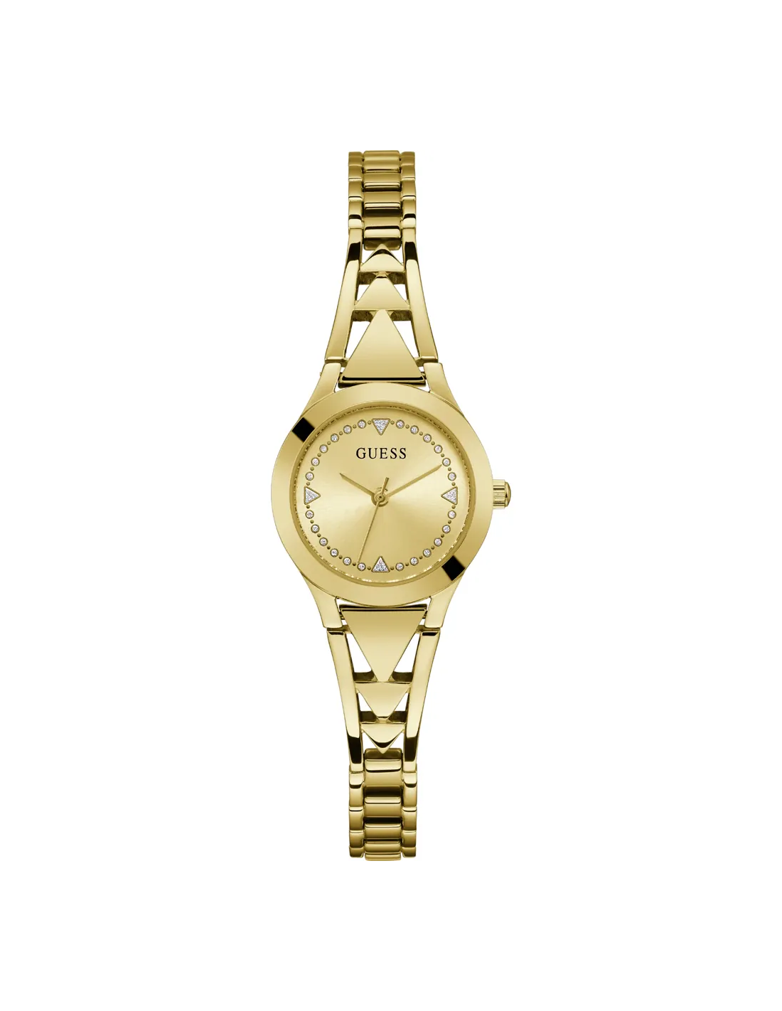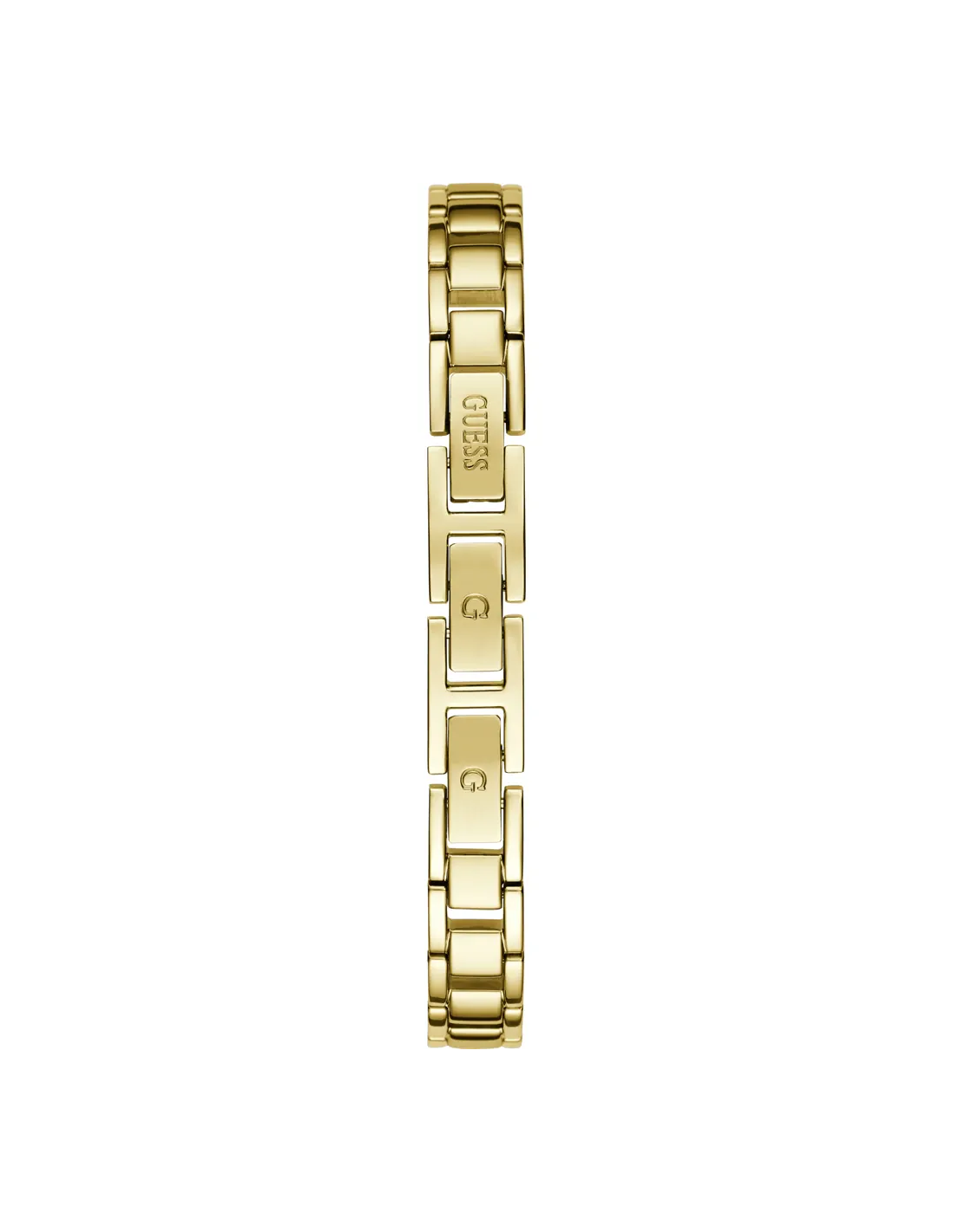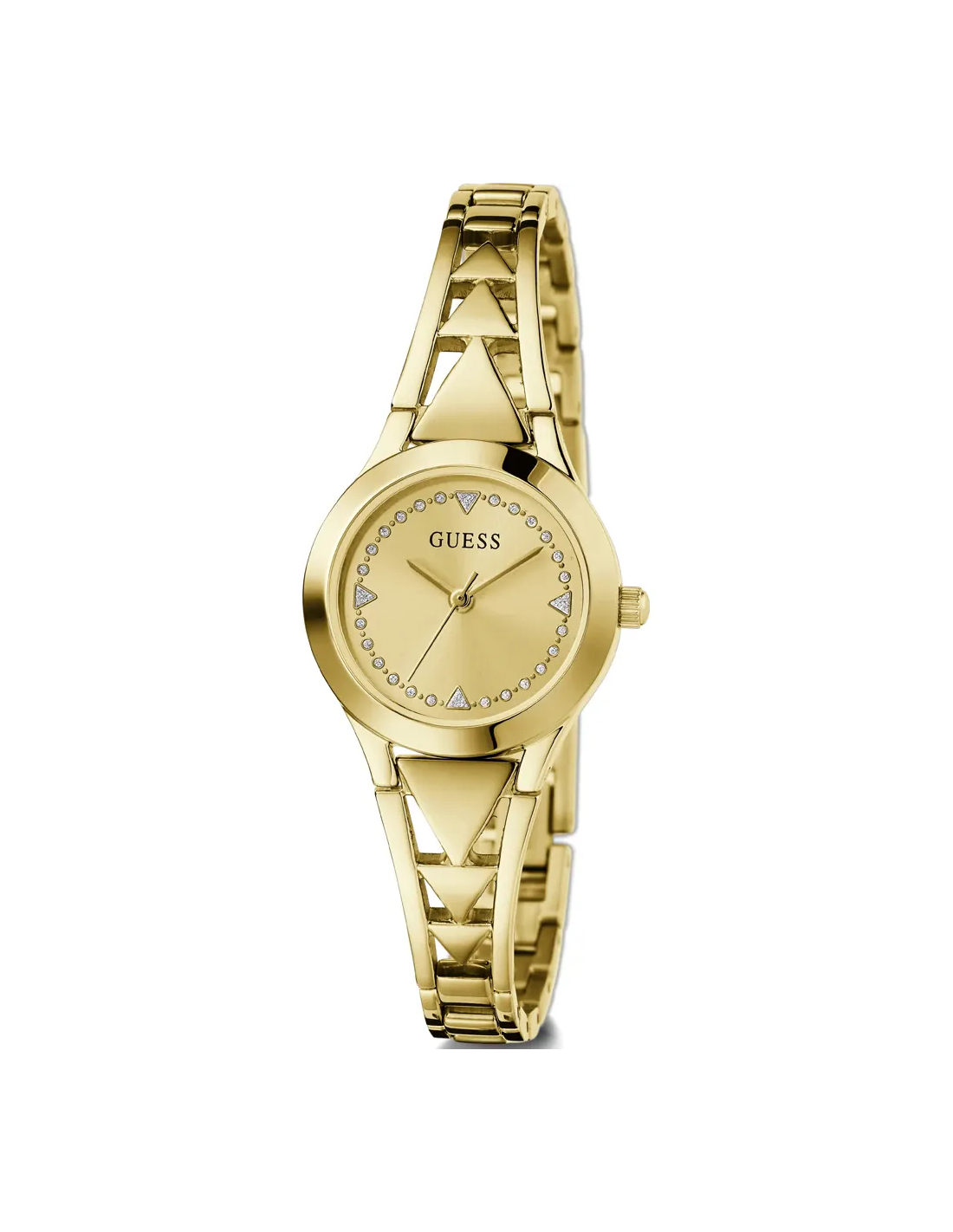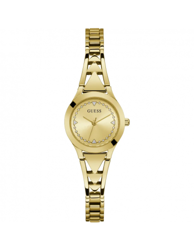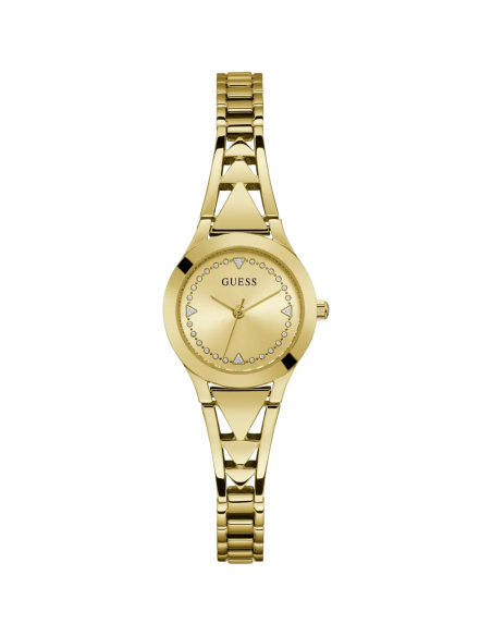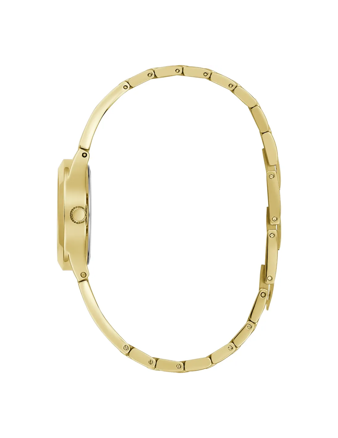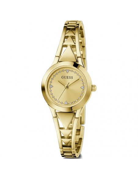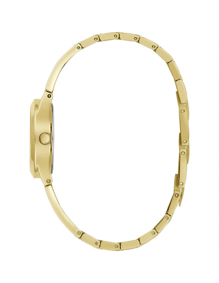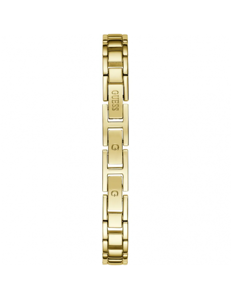 Este reloj marca Guess tiene una caja de Inox con un diámetro de 26 mm y cuenta con una correa de metal. Dentro de la caja se encuentra un mecanismo de Seiko de alta calidad el cual esta protegido por un cristal Mineral.