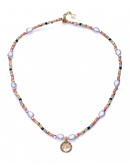 Un colorido collar de cuentas con un dije del árbol de la vida, completado con unas hermosas perlas sintéticas. Una femenina pieza con una longitud de 42 cm para presumir y llenar de color tu look. Tienes ante ti mil y una combinaciones posibles. Pero todo empieza por conseguirlo en este momento, solo en Viceroy. Longitud: 42 cm.