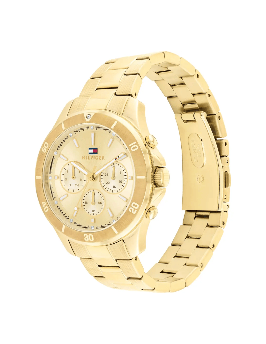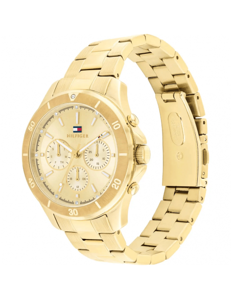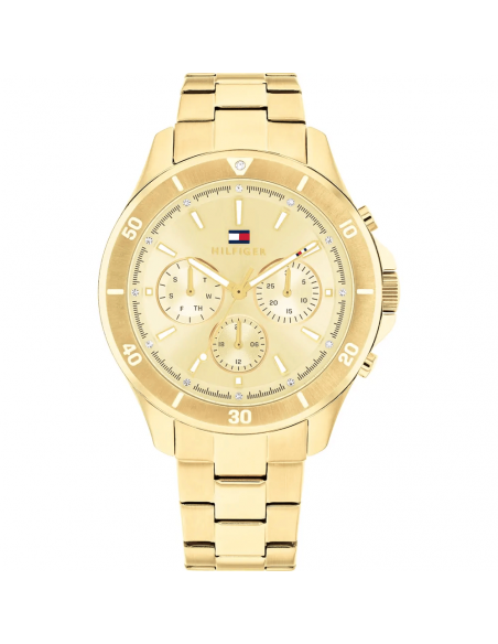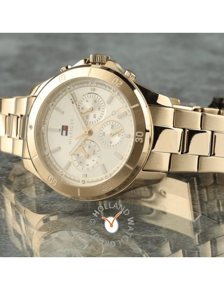 Este reloj marca Tommy Hilfiger tiene una caja de Inox con un diámetro de 38 mm y cuenta con una correa de metal. Dentro de la caja se encuentra un mecanismo de Seiko Instruments Inc. de alta calidad el cual esta protegido por un cristal Mineral.