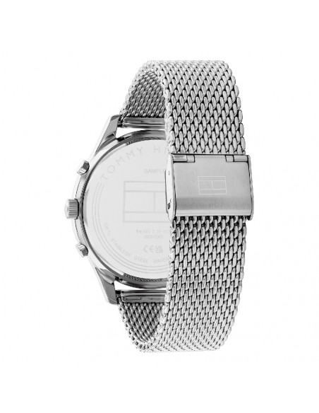 Este reloj marca Tommy Hilfiger tiene una caja de Inox con un diámetro de 44 mm y cuenta con una correa de metal. Dentro de la caja se encuentra un mecanismo de Miyota de alta calidad el cual esta protegido por un cristal Mineral.