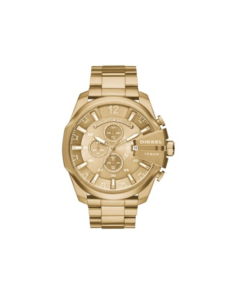 Reloj Diesel Mega Chief Cronógrafo Hombre DZ4360 con maquinaria de cuarzo, caja de acero de 53 mm dorada ,calendario y correa de acero dorado con cierre de pulsador.