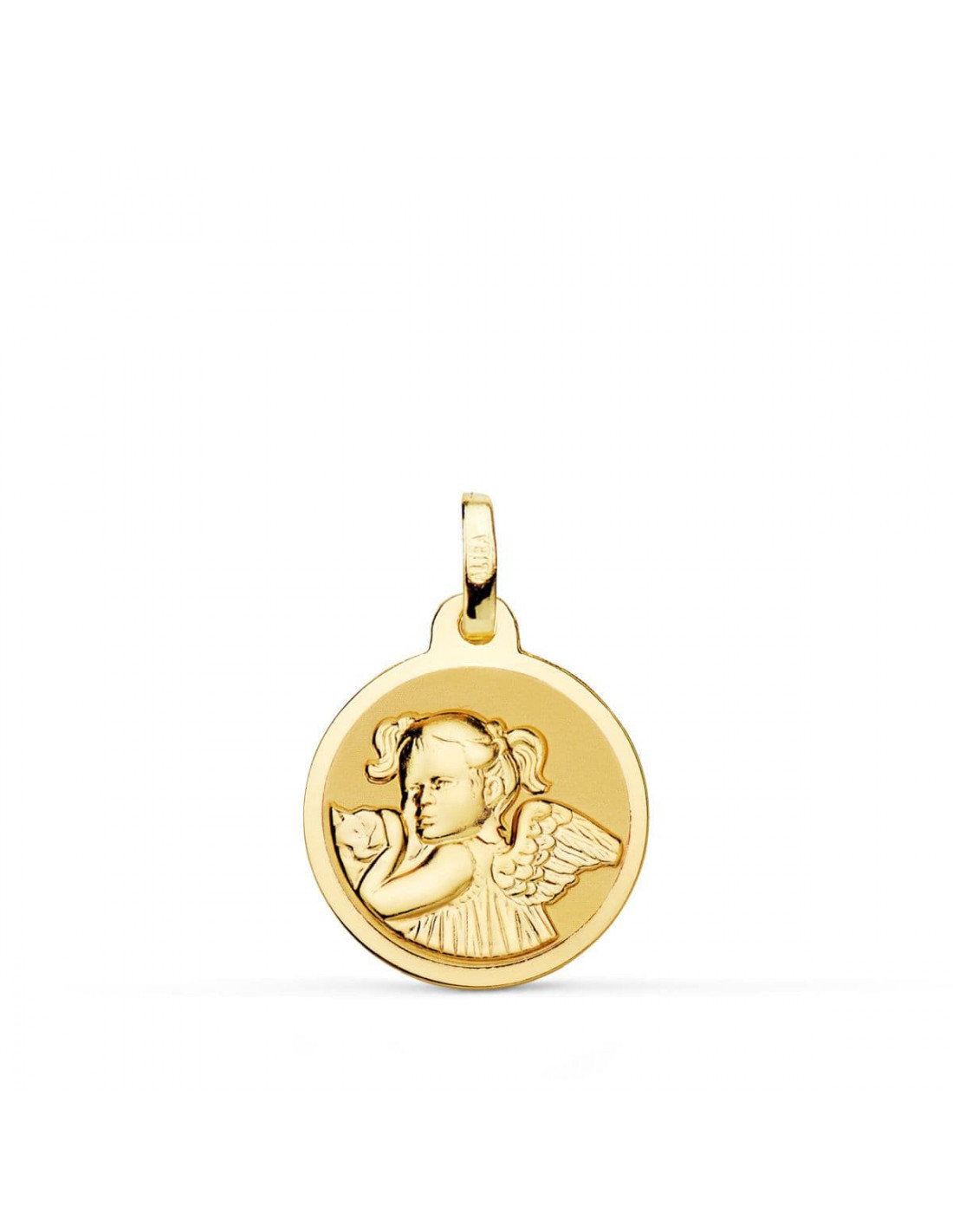 18K MEDALLA ANGEL NIÑA REVOLTOSA EN BRILLO 14 MM