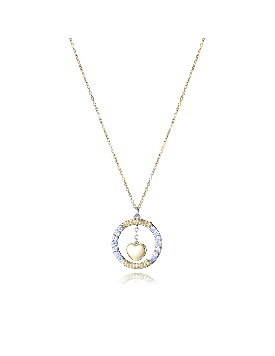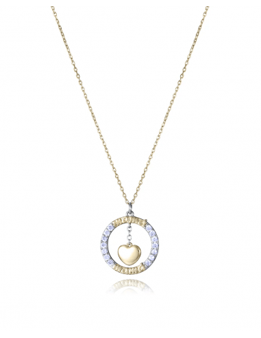 Collar creado en la mejor plata de ley con baño de oro, rematado con un colgante en forma de aro, la palabra "mamá" y un corazón, todo realzado con un baño de rodio. Un complemento único para la única que existe. Regálaselo en su día y demuéstrale todo tu cariño con esta joya exclusiva de Viceroy. Longitud: 42 + 3 cm.