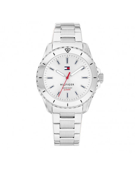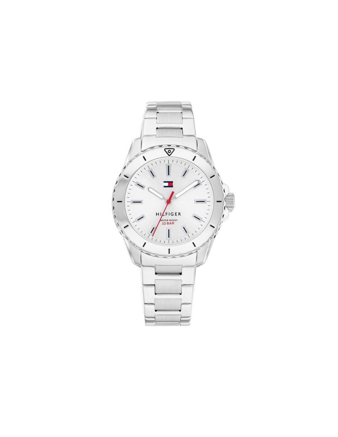 Reloj Tommy Hilfiger para niña de la colección Girls ideal como regalo de comunión fabricado en acero inoxidable plateado. Este elegante reloj cuenta con caja de 32mm de diámetro con bisel plateado al igual que su esfera que contiene indicadores en forma de barras azules y agujas luminiscentes movidas por mecanismo de cuarzo analógico protegido por cristal mineral.