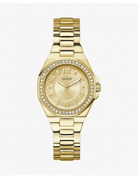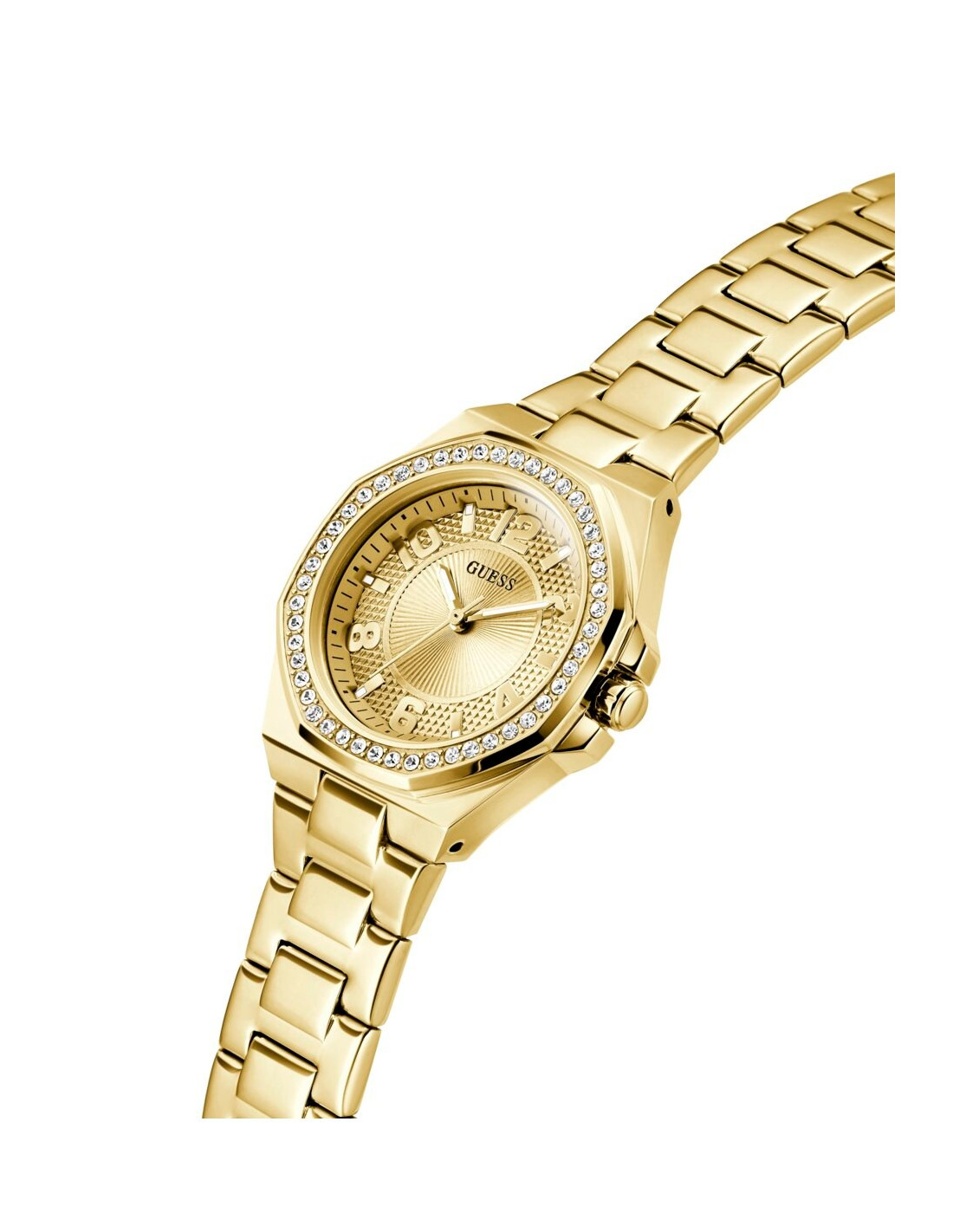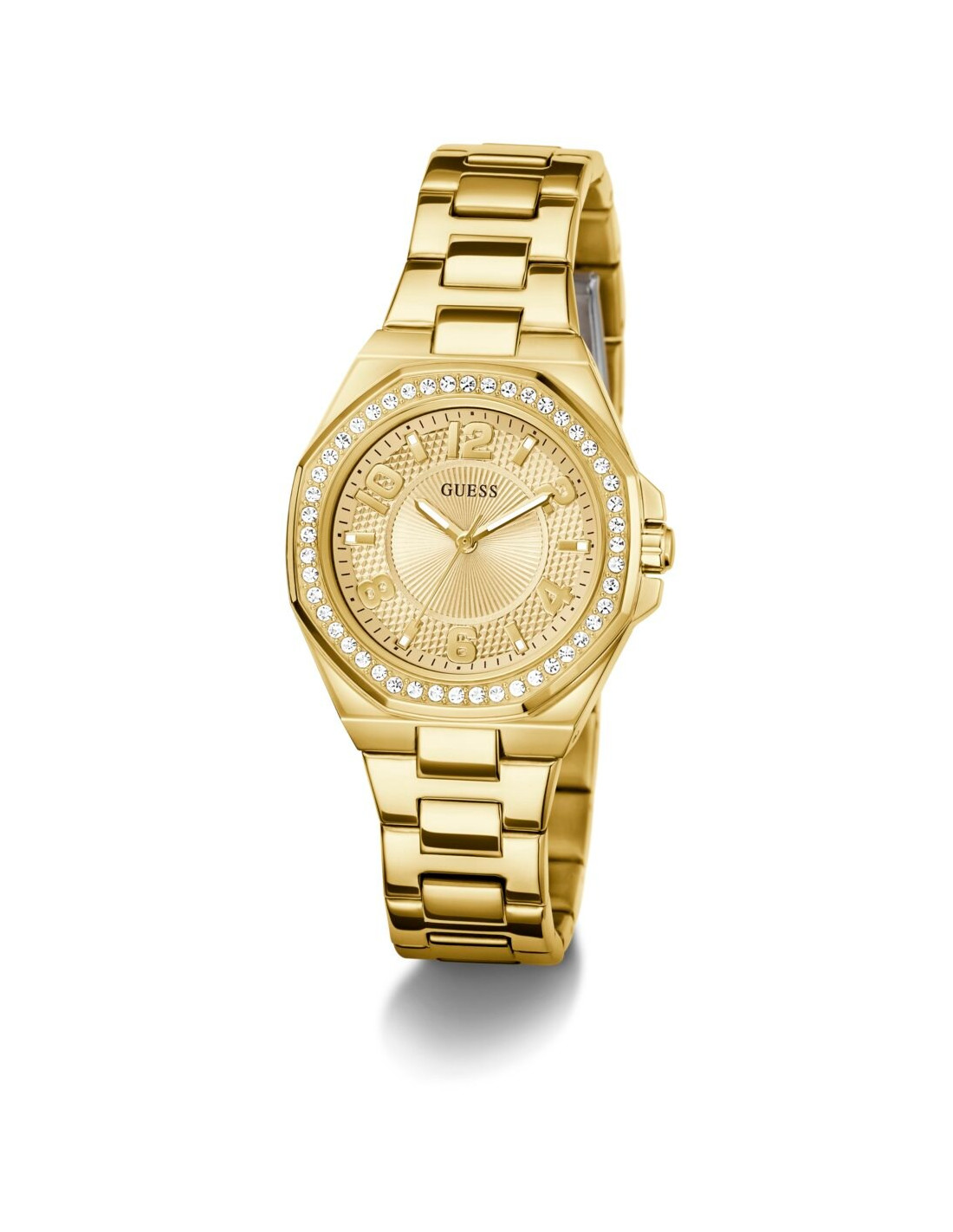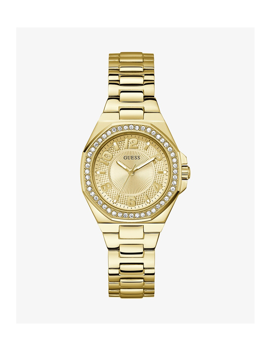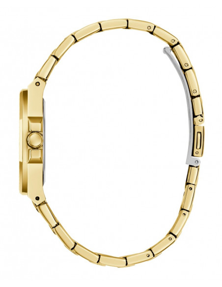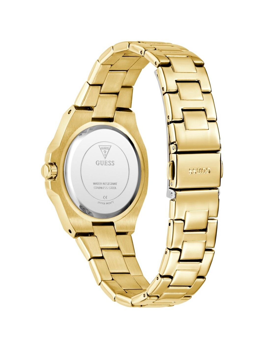 Reloj de mujer Contessa GW0877L2 de acero y correa dorada. Reloj de mujer de la marca Guess con caja de acero reciclado brillante 34mm dorado con cristales, esfera con textura, brazalete de acero brillante dorado. El CONTESSA es una combinación perfecta de diseño moderno y estética clásica, que destaca por su carácter sólido y elegante. Este reloj es la opción ideal para quienes buscan un accesorio que combine sofisticación atemporal con un estilo audaz y distintivo.