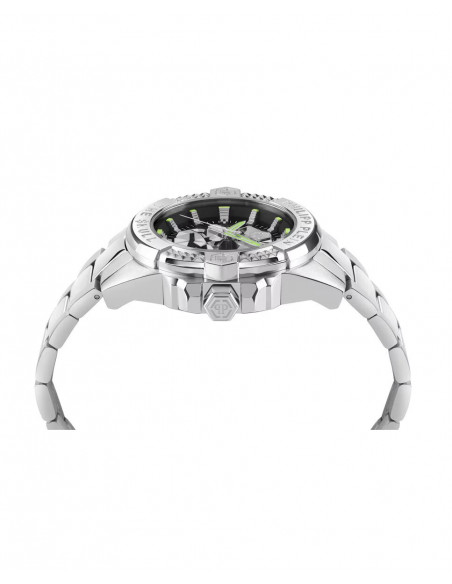 Reloj de hombre de la marca Philipp Plein con caja de acero inoxidable 44mm plateada, esfera negra con calavera en relieve plateada, bisel plateado con inscripción de Philipp Plein a las 12h y The Skull a las 6h, brazalete plateado. El $kull vuelve a escena para la temporada luciendo un nuevo y elegante brazalete metálico que eleva su diseño a un nuevo nivel de sofisticación, convirtiéndolo en una verdadera pieza de declaración, atreviéndose a destacar entre la multitud.