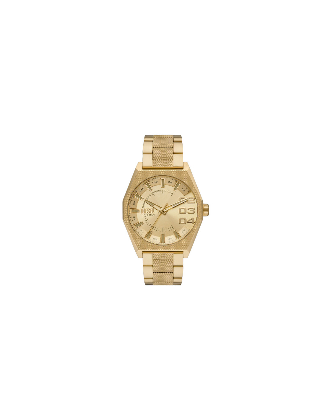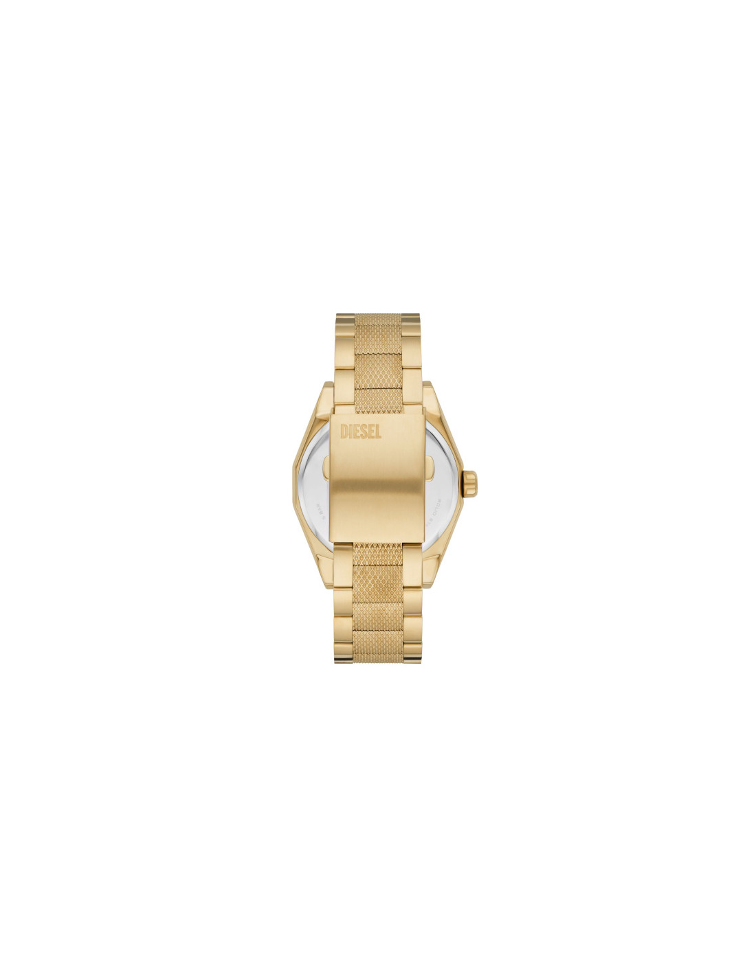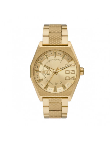 Reloj Diesel Scraper Hombre DZ2173 con movimiento cuarzo, caja acero 43 mm color oro, esfera dorada y correa de acero desplegable con pulsador.