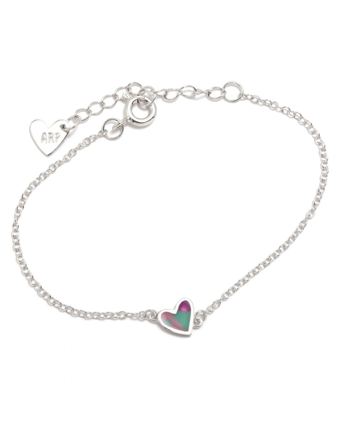 Pulsera de plata de ley y baño de rodio, con esmalte y cierre de mosquetón. Tiene cadena de extensón.