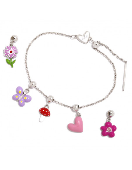 Pulsera de plata de ley y baño de rodio. Cierre corredero ajustable.