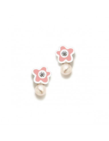 Pendientes de plata de ley y baño de rodio, con esmalte, perlas naturales, circonitas y cierre de rosca.