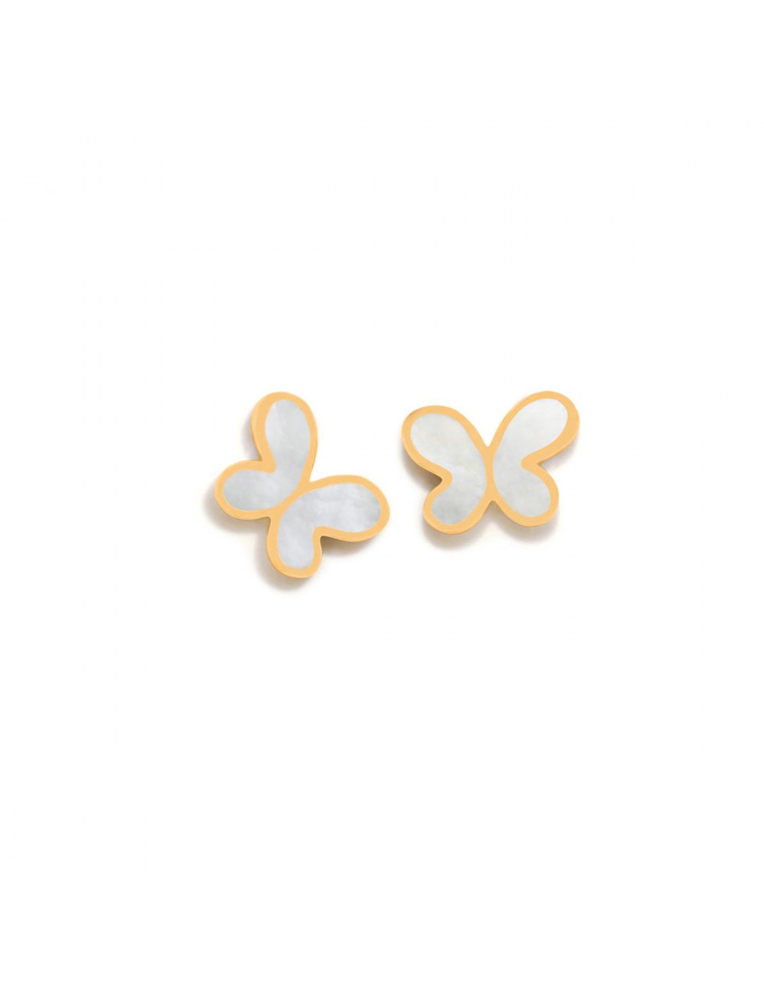 Pendientes de plata de ley, nácar y baño de oro y cierre de rosca.